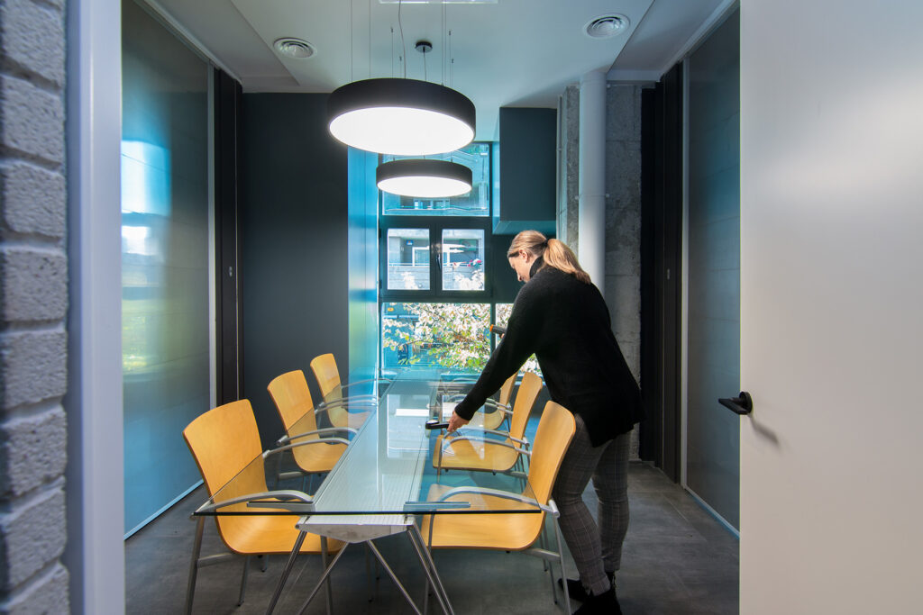 Esta imagen corresponde a un proyecto de iluminación de oficinas, estamos midiendo la iluminancia con el luxómetro. Gracias a este procedimiento nos aseguramos que haya la suficiente luz en la estancia. A continuación te dejamos unos cuantos parámetros que indican los niveles de lux adecuados: