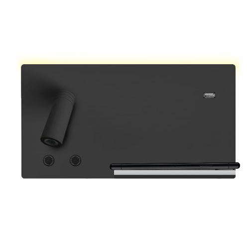 Aplique de dormitorio LED de aluminio lacado blanco o negro, con luz de lectura direccionable, luz de ambiente superior, puerto USB y cargador inalámbrico. Incluye driver LED Isolated.