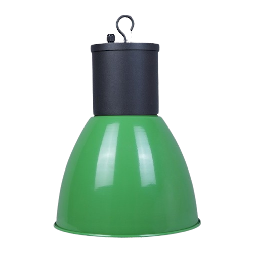 Campana decorativa fabricada en aluminio de color azul, verde o rosa con unas medidas de Ø250×300 milímetros. Cuenta con un portalámparas en E27 y 2 años de garantía.