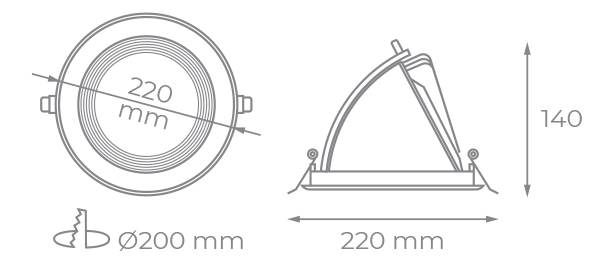 Foco LED basculante diseñado para su instalación de forma empotrada. Está fabricado en aluminio lacado en blanco, cuenta con 30W de potencia y 3000 lúmenes y unas medidas de Ø220×140 milímetros. Incluye driver LED Isolated. 3 años de garantía.