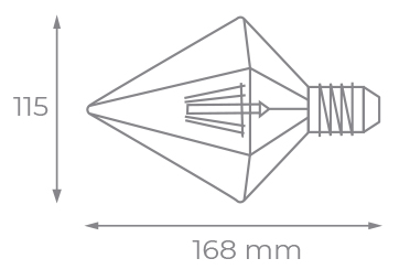 Bombilla LED de cristal ámbar con un formato TD111 con unas medidas 115×168 milímetros y un portalámparas E27. Cuenta con una potencia de 4W 320 lúmenes, un ángulo de apertura de 360º y un IP20.