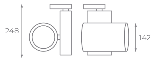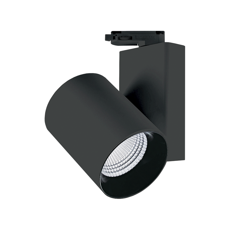 Proyector LED fabricado en aluminio lacado en blanco para carril trifásico. Cuenta con una potencia 30W 3100 lúmenes y unas medidas de Ø142×248 milímetros.